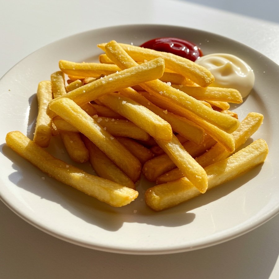 Golden, crispy battered fish fillets served with thick-cut fries and homemade sauce.